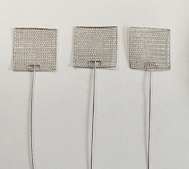 ?高純度99.999%鉑Pt制作,鉑網由鉑絲編織成網,精密加工技術可使網絲均勻分布,且網格大小一致,織網絲徑一般0.12mm、0.15mm、0.18mm、0.20mm,鉑網常規寬度50mm,52目,絲線徑0.12mm,也可根據客戶您的需求定制特殊鉑絲規格和鉑網規格,邊框殼使用鉑絲點焊接固定,非常耐用。